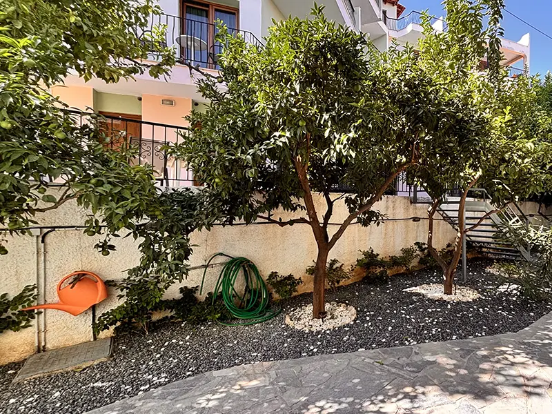 Our Studios in Tolo at Ninemia Residence measure around 30m², are spacious and offer a patio with trees creating a calming atmosphere and providing our guests with the perfect place to enjoy the peace & calmness. Decorated in tones of blue and beije each rooms contains is a small node to the colours of Greece and along with other small details like the classic marble floors they bring everything together to a result that inspires an authentic Greek vibe.
